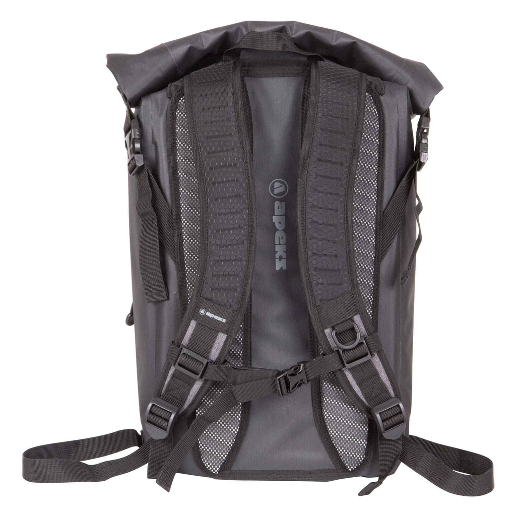 The Apeks 30L dry rucksack is your new everyday bag. A roll top closure will keep your belongings dry, whether you are on the back of a boat or commuting home. The large dry compartment has a dedicated padded laptop sleeve and the front of the bag has an easy to access water-resistant pocket. With a fully vented back and shoulder strap system, you'll always keep your cool, no sweaty shirt backs here! Durable and weatherproof, carry your gear in purposeful style, wherever you might be going.