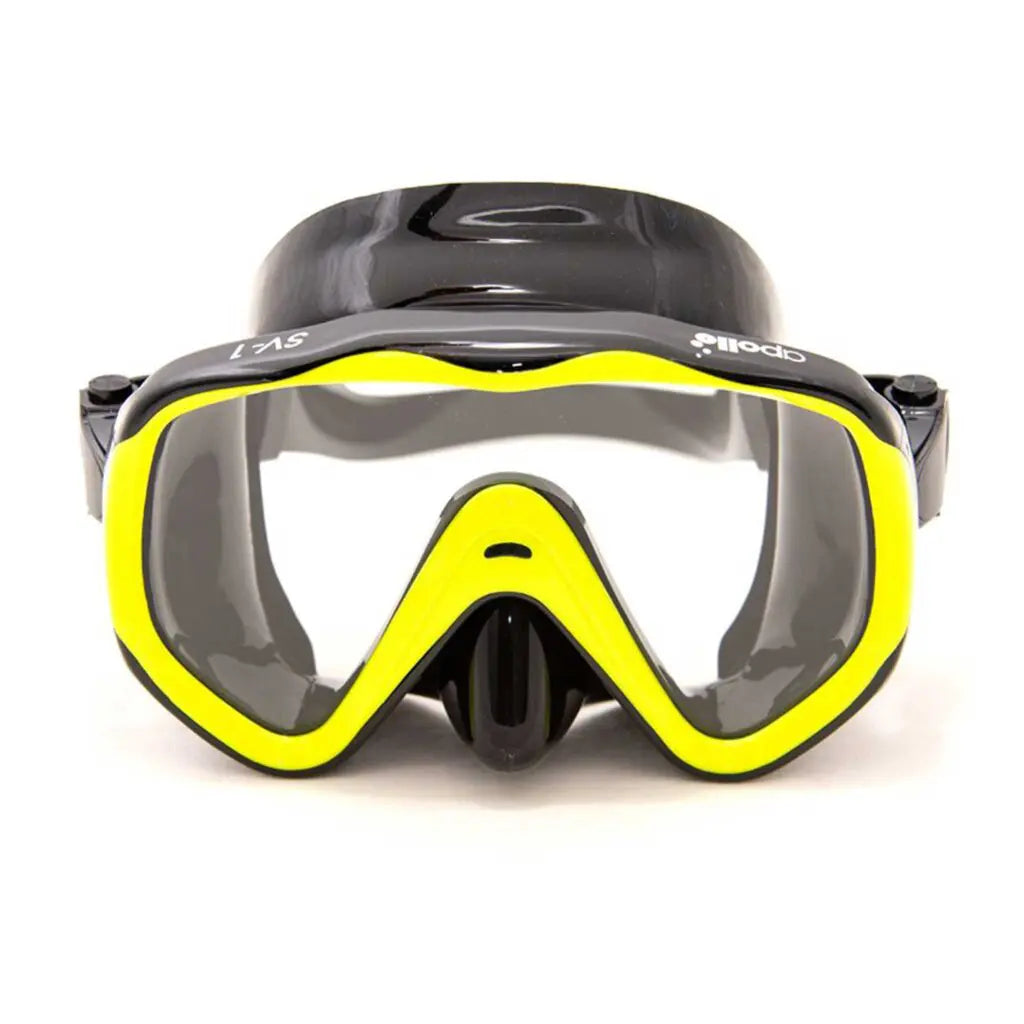 The Apollo SV1 Dive Mask Black has a wide field of view that fits regular to larger faces. It also has a low volume for easy clearing. The SV-1 has a flexible buckle attachment that swivels with easy-adjusting push-button strap adjustments. This mask is great for scuba diving and snorkelling.
