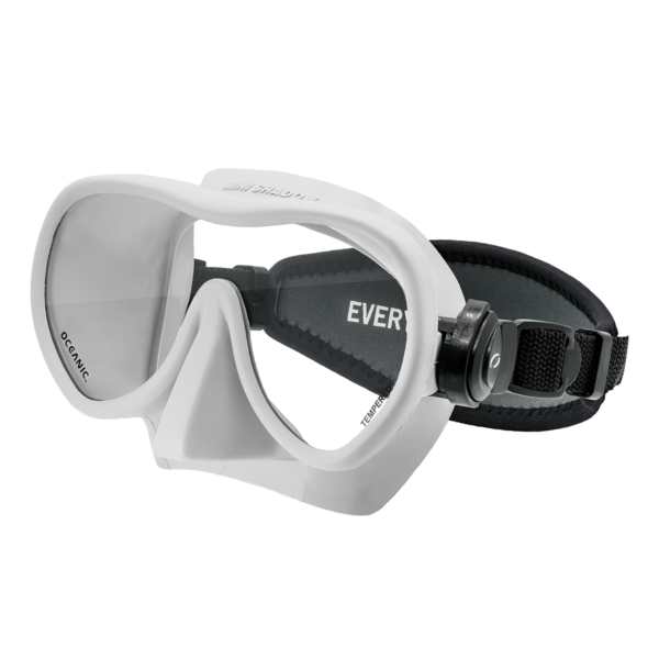 Shadow Mask features a sleek 100% liquid silicone skirt that attaches directly to the tempered glass lens. No mask frame means the Shadow Mask offers an incredible field of vision and packs flat.