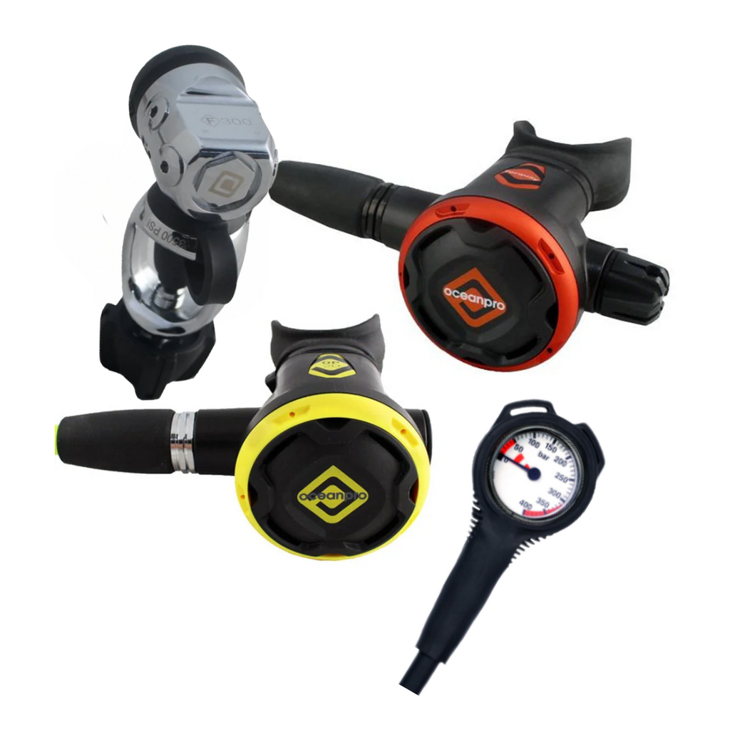 The Oceanpro Torquay F300 regulator offers sleek, robust design and customisable high-level performance for both new and experienced divers. A top choice in the value-for-money category, outperforming European competitors in performance, popularity, and value.